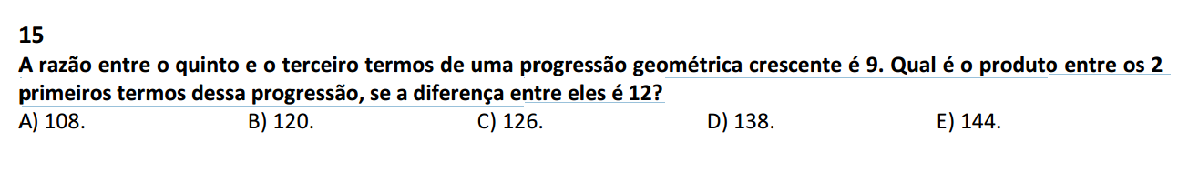 Resolução: a 5 / a 3 = 9 (1) a 1 * a 2 = ? (2) a 2...